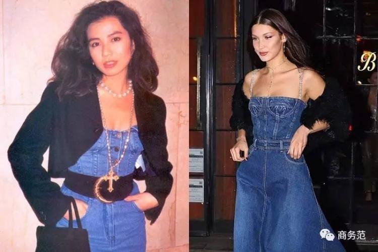 束身马甲风的牛仔连衣裙,红姑将它搭出复古范儿。Bella Hadid在不久前穿过的这件Dior牛仔裙,看上去是不是有点眼熟呢?