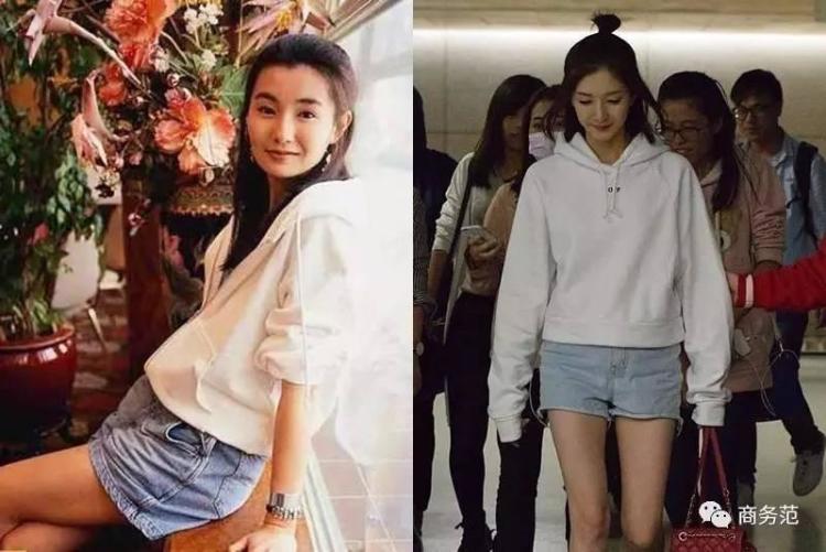 而范主更发现,她们当中很多人穿过的单品,在现在依然能成为时髦前端的潮流必备,每个人都称得上是妥妥的香港Icon:“最美港姐”李嘉欣,用这身粉色毛衣+太空银紧身裤的Look,证明了自己不仅有颜值,同时还有时尚Sense。Kendall Jenner多年后的这身夏姿陈套装则说明了时尚是一个轮回。