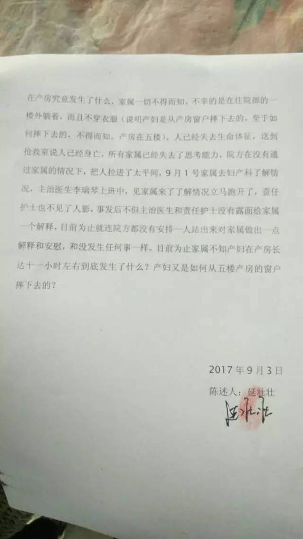 延先生堂哥:她第二次出来的时候确实跪下了,说疼得不行,我们都同意了(做剖腹产),我们也跟医生说了,医生说马上要生了,不能做(剖腹产)了。