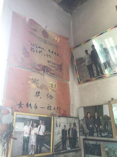 殷玉珍的家,像是一个小型纪念馆。墙壁上挂满了一张张泛黄的照片和奖状,有和丈夫一起坐在沙丘上的殷玉珍,挂着绶带的殷玉珍,和一众外国人站在一起的殷玉珍,举着2008年奥运会火炬的殷玉珍……那些的满目沧桑和春风拂面,都在向我们这些前来拜访的人们,讲述这个不一般的故事。