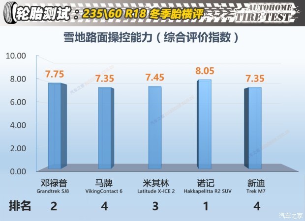 诺记其实整体成绩好也是在意料之中,毕竟也是诞生于寒冷地区的品牌,主攻技术就是冬季性能,雪地路面和结冰路面的成绩都没有什么死角,但相应的在价格方面则没有任何优势,加上进口品牌的身份,在此次横评中是最贵的一款。