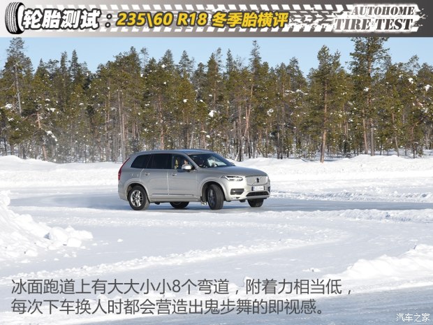 冰面操控的测试场是建立在冰湖面的一个拥有8个不同角度弯道跑道,这是在超低附着力路面上中车速最快的项目,是考验轮胎综合抓地能力的偏向极限的表现了,在这种路面上一旦突破了轮胎的极限,也就接近于完全失去控制了,任凭车辆转向不足或过度,在生活中这样的场景也只能无奈和等待。