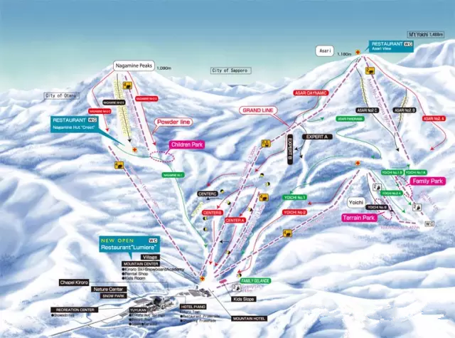 这里每年有平均21米超高的降雪量,什么概念呢?摞起来可是6层楼的高度,而在喜乐乐滑雪场的山顶更是有高达5米厚的积雪,这么极致的雪质在国内是根本见不到的。在这里不管你是初学者还是老练的滑雪高手,这里的21条雪道(初级道33%、中级道29%、高级道38%)你都能找到1条适合自己的,让你在粉雪的世界里开开心心的玩上几天。这里的山跟国内相比还是有些低,最高处仅有1180米,最低处570米,可落差比国内一流的滑雪场要大点,有610米,37度的最大坡度以及最长4050米的超长雪道提升了喜乐乐的刺激程度,最重要的一点就是雪质好!