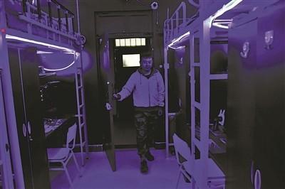 “我们的整体设计是一个太空舱。”邓亚东说,他打开27日晚上拍的照片,宿舍四个同学都坐在自己的座位上,房顶中央的白炽灯被关上,从床边和房顶四周延伸过去的LED灯带闪着蓝色的光,从门口看去,确实像是进了一个微型舱内。
