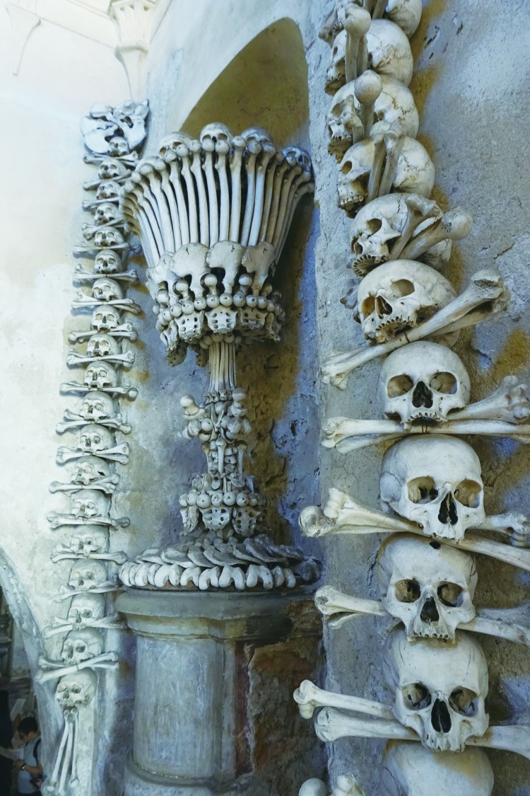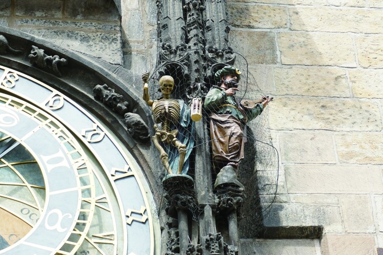 “黑暗系”几乎存在于布拉格的每个小细节里。行走在这座城市中,最常见的东西恐怕非“骷髅头”莫属了。布拉格市中心的“天文钟”是每个到捷克的游客必去参观的著名建筑,它的墙壁上就赫然立着一小座“死神”的雕像;在位于捷克发祥地高堡的贵族公墓里,有一圈围廊,而围廊的顶部画满了骷髅头;而就在离布拉格70公里的昆特拉赫那小镇上,甚至还存在一座“人骨教堂”,小小的屋子里赫然摆放与悬挂着几万个骷髅头,简直就是电影《惊心食人族》的“现场版”。