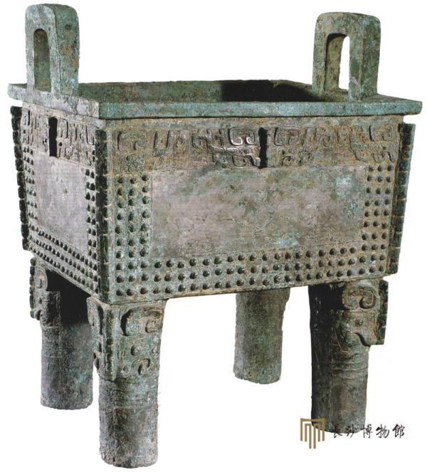 鼎是我国新石器时代出现的炊煮器,逐渐被赋予祭祀礼器的内涵。铜方鼎出现于商代,成偶数使用。妇好墓随葬一对两件司母辛铜方鼎,口沿下一周夔(龙纹的侧面像)龙纹为主纹饰。铭文“司母辛”铸于口下内壁,表明该鼎是妇好的子女为祭祀亡母辛而铸造的,“辛”是妇好去世后在宗庙被供奉的庙号。此鼎重达117.5公斤,是不多见的商代大型重器。