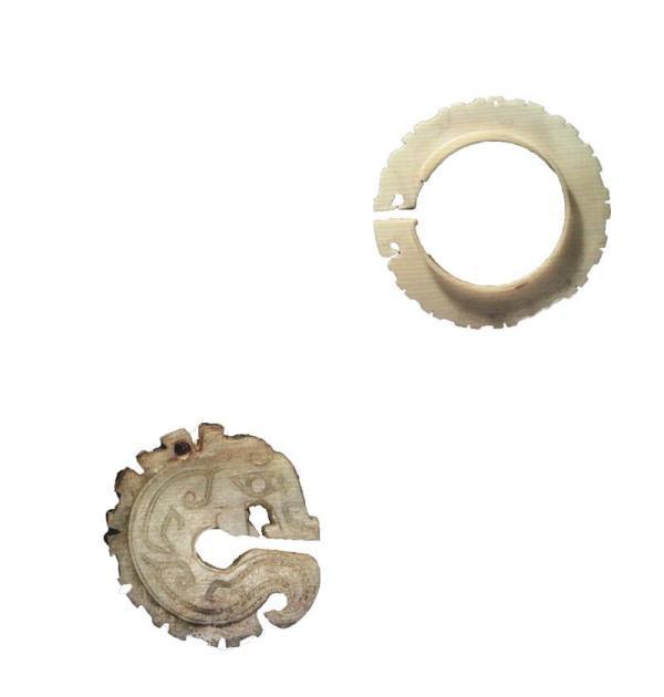 玦为半环形或环形有缺口的配饰。除了佩戴,玉玦也有礼仪以及其它功能。古文献记载玉玦还具有表达绝交、决心等涵义。该玦以团龙为造型,上有穿孔,应为佩戴之物。