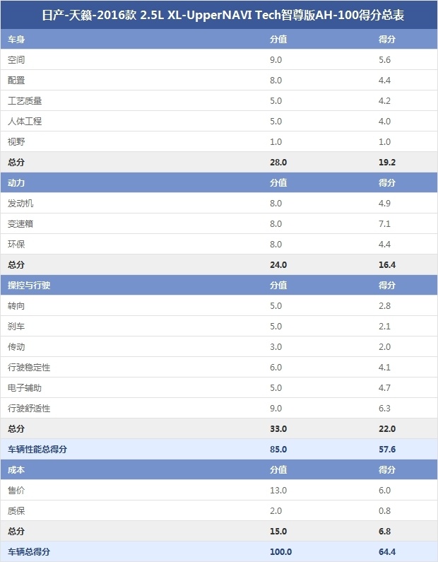 首先你们可能觉得这篇文章收钱了,不然怎么没事儿闲的“炒冷饭”。真不是!我写这篇文章纯粹因为最近汽车之家在搞“AH-100”汽车评价体系,而目前2016款的天籁2.5L车型还没有数据,因此弄来做个测试,顺便出个文章公布一下结果,仅此而已。如果非要说我有什么好处的话,那就是免费得到了这款指导价24.78万元的2016款天籁2.5L XL-Uper NAVI Tech至尊版车型...的4天免费使用权。