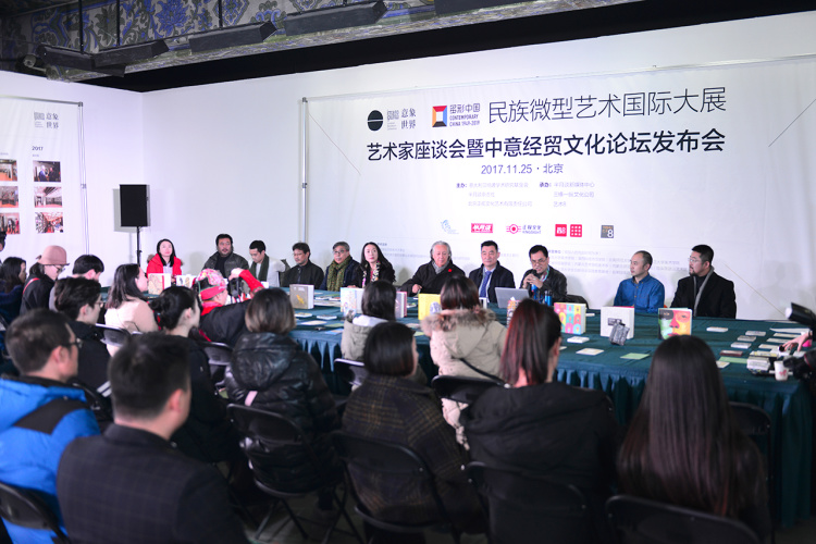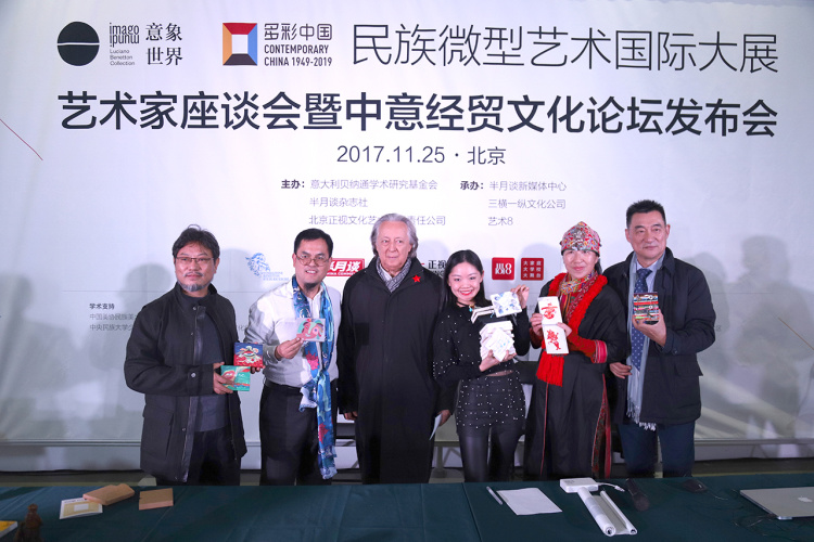 【环球网综合报道】11月25日下午,由意大利贝纳通学术研究基金会、尚8文化集团、半月谈杂志社和北京正视文化艺术有限责任公司主办,半月谈新媒体中心、三横一纵文化公司和艺术8承办的“多彩中国——民族微型艺术国际大展”艺术家座谈会暨中意经贸文化论坛发布会在北京艺术8举行。