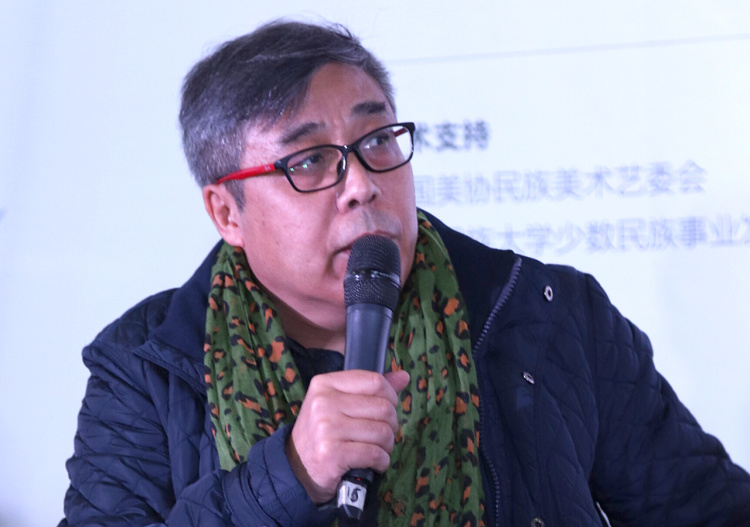 “多彩中国”大展特邀策展人、《中国民族美术》运营总监丁三丰,讲述了参与“多彩中国”大展近两年来的感受。他认为每一幅作品都是艺术家真挚情感的抒发,作品中呈现出来的,除了不同地域各具特色的民族文化基因外,能感受到每个艺术家鲜明的艺术风格和蓬勃的创作活力。