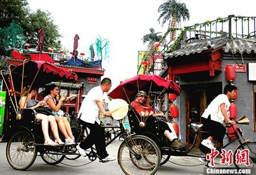 资料图:8月7日,中外游客游览感受老北京什刹海胡同文化。中新社发 张勤 摄