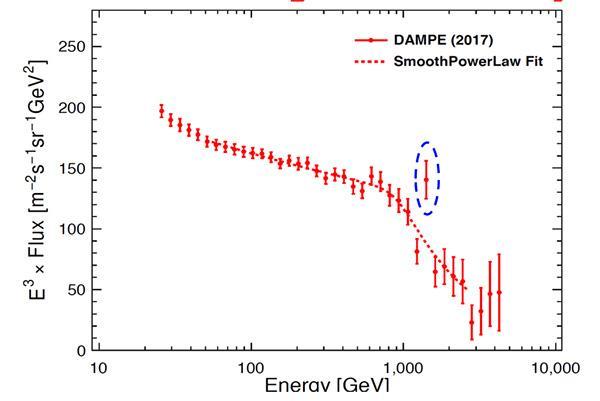 更加惊喜的是,在1.4TeV处,“悟空”的数据里呈现出一个尖锐结构,这是之前所有人都未曾预测到的。