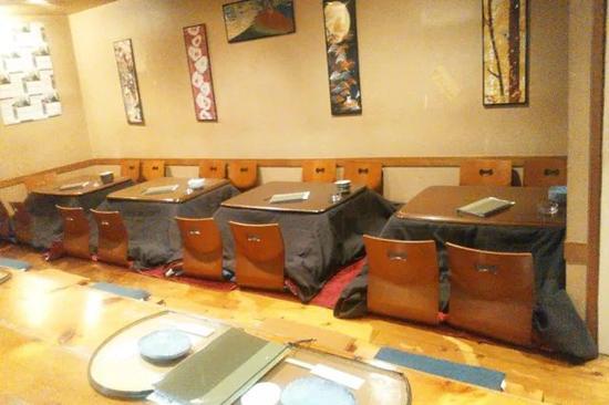 在榻榻米上的暖桌座位也成了外国客人的首选。脱掉鞋子在暖桌里找一个舒服的姿势,喝点小酒,来再点异国料理,冬季的生活真美好呀。