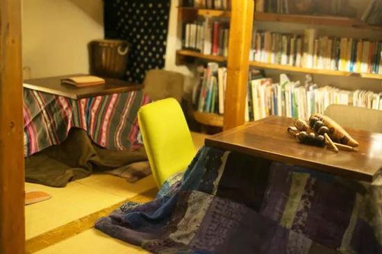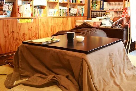 东京丰岛区池袋的书店咖啡馆“天狼院(Tenrouin)书店”中,你可以一边品尝咖啡,一边在被炉里享受阅读的乐趣。
