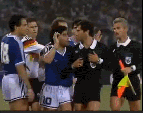 谁来主罚点球?马特乌斯本来是第一选择,不过铁马示意自己的球鞋鞋底有裂纹,刚刚更换新鞋,还不适应。布雷默来操刀,神奇的阿根廷门将戈耶切亚,这次距离成佛只差一个手掌。阿根廷的蒙松和德索蒂染红被罚下,马拉多纳哀求裁判不要出第2张黄牌给德索蒂,也领到黄牌,这样的场面格外悲壮。