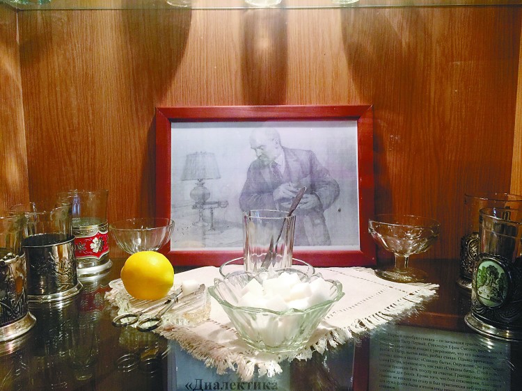 除了列宁和家人使用过的生活用品,展品还有一些书信,写信的人都曾在这套公寓里与列宁见面、讨论革命事业。约诺夫曾经和列宁在这套公寓里见面。他回忆说:“我们谈了大约两个小时。”夜里两点多的时候,约诺夫准备离开,列宁说:“现在我们家里人都睡了,您和我一起用晚餐吧。”餐厅里,在已经凉了的茶炊旁边放了供两人用的晚餐:黑面包、奶酪和一些黄油。看来,这样晚的“晚餐”在这个家里已经稀松平常。