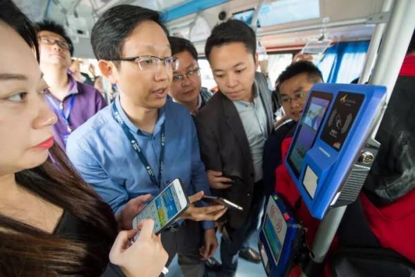 阿尔法巴智能驾驶公交车支持手机二维码支付车资。