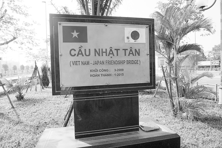 《环球时报》记者在桥头看到一座桥碑:铜制的牌匾上印着日本与越南两国的国旗、越南语的“日新大桥”几个字,还有一行意为“越南-日本的友谊之桥”的英文。日本借援助项目提升在越南的存在感与影响力的期望十分明显。据了解,在大桥临近竣工之时,日本使馆还曾专门提出,希望能将大桥的名字直接命名为“越日友谊桥”,但后来没有得到越南政府的同意。