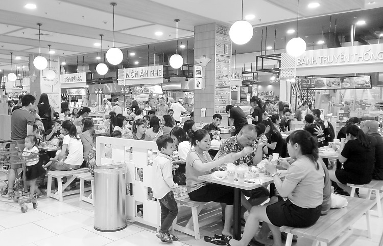 图说:当地人在龙边商城用餐。日本投资兴建的龙边商城是河内最大商城之一。