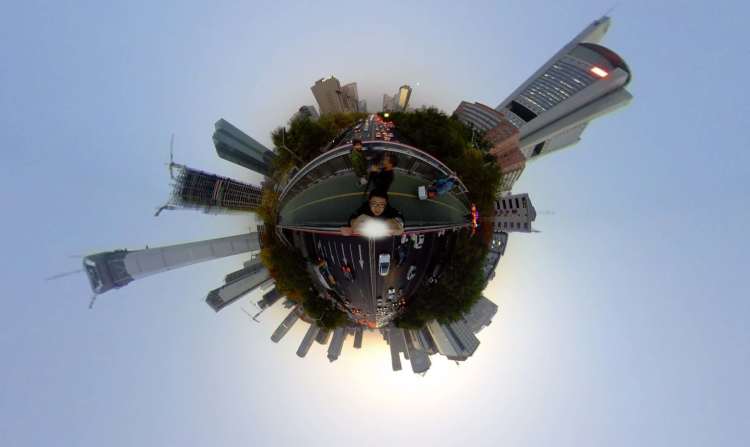全景相机是一种能拍摄全景照片的相机(废话),它拍的一张照片可以把前后上下左右全拍到。很早就有人把N多个GoPro运动相机拼在一起组成全景相机、或是用一台相机把前后上下左右拍个遍,然后用PTGui等后期拼接软件把这些照片拼起来。