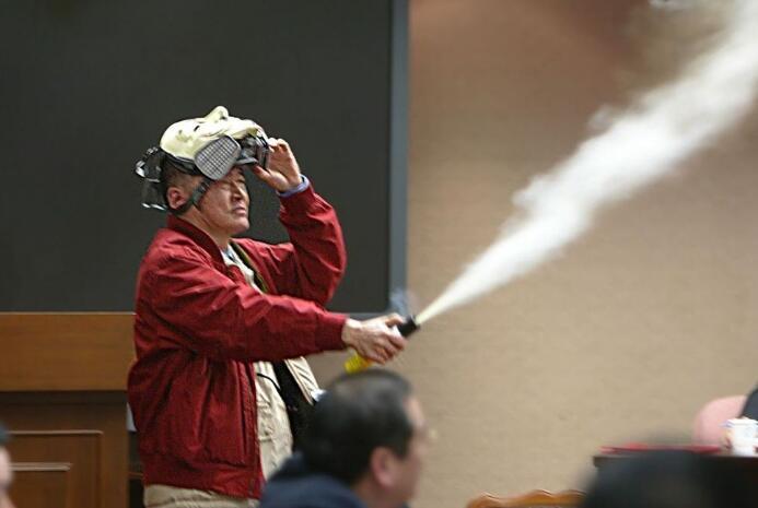 为阻止军购案,李敖还大闹“程序委员会”,不但耍弄电击棒,还拿出防狼喷雾器在会场猛喷催泪瓦斯,呛得蓝绿“立委”眼泪直流。
