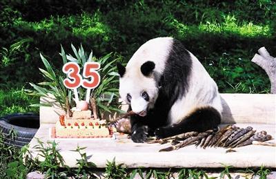 成都大熊猫繁育基地勇勇祝新星妈妈生日快乐!蜀庆在成都祝妈妈生日快乐!美国孟菲斯动物园乐乐祝妈妈生日快乐!加拿大多伦多动物园二顺携盼盼、悦悦祝祖母生日快乐!中国大熊猫保护中心和和、久久祝祖母生日快乐!乐乐:奶奶生日快乐!……昨天是重庆动物园熊猫界的老寿星“新星”的35岁生日,这个年龄约等于人类的110岁。
