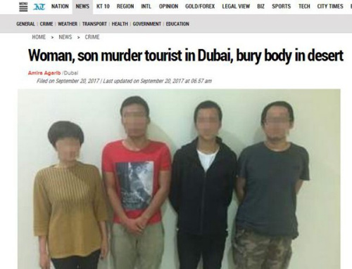 负责刑侦事务的迪拜警察副署长Khalil Ibrahim Al Mansouri表示,受害者家属8月时来到阿联酋,向警方报告其55岁的父亲失踪。警方调查结果显示,受害者骆先生于8月4日飞抵迪拜,当日47岁的中国籍女子徐某、29岁的儿子崔某以及另外两名同伙在机场外等候。骆先生下飞机后被四人绑架到他们的车上并进行拷打,在套出其支付宝等账户密码后,骆先生被几人殴打致死。