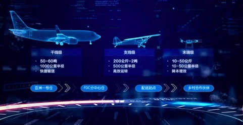 ①干线无人机配送(第一级):通过干线无人机,实现覆盖跨省间的区域仓到仓的干线物流快速调拨。这一环节是大型无人机,载重量将是几十吨级别的。