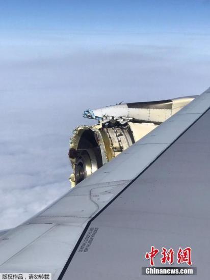 由机上乘客上载到社交媒体的照片与视频可以看到,出事发动机的整流罩彻底损毁,机件完全外露,发动机所在的右侧机翼也有些表面损伤。