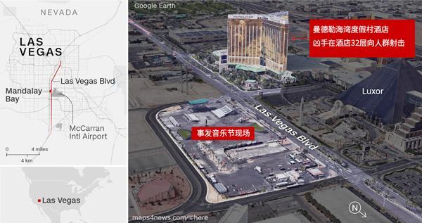 美国当地时间10月1日晚10点20分左右,当2万2千人正在位于拉斯维加斯的Route 91 harvest乡村音乐节狂欢时,64岁的白人男子斯蒂芬⋅帕多克(Stephen Paddock)在距离音乐节约400米的曼德勒海湾度假村酒店32层用藏匿的10支来福枪向音乐节现场疯狂扫射。据美联社报道,截至当地时间10月2日早上8时许,该事件已造成至少58人死亡,超过515人受伤,成为美国历史上最严重的大规模枪击案。据美联社早前消息,极端组织“伊斯兰国”(IS)宣称对美国拉斯维加斯枪击事件负责。但FBI认为,从现有证据来看,凶手与“伊斯兰国”等国际恐怖组织并无关联。