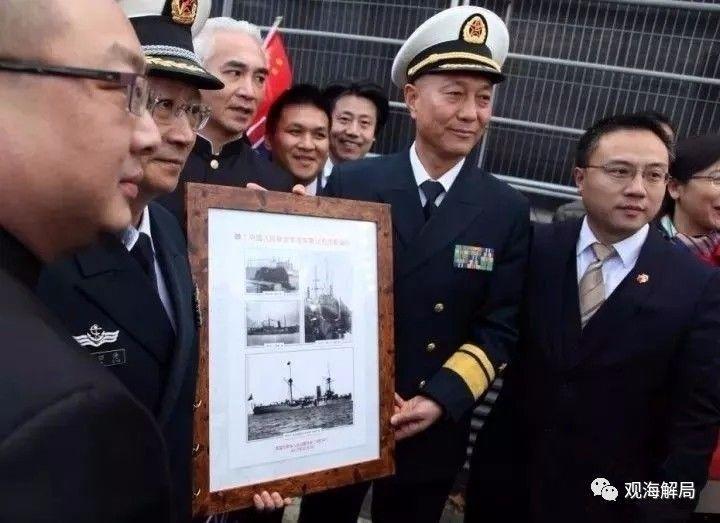 在中英两国国旗夹道欢迎的队伍中,他“拦”下舰队指挥员王仲才少将,朗声表述赠送词:“100多年前,晚清政府筹备北洋水师期间,在英国纽卡斯尔的阿姆斯特朗船厂制造了四艘巡洋舰,分别是镇远号、靖远号、超勇号和扬威号。赠送这个图辑,以表达我们勿忘国耻、富国强军的强烈愿望。”