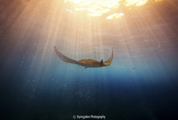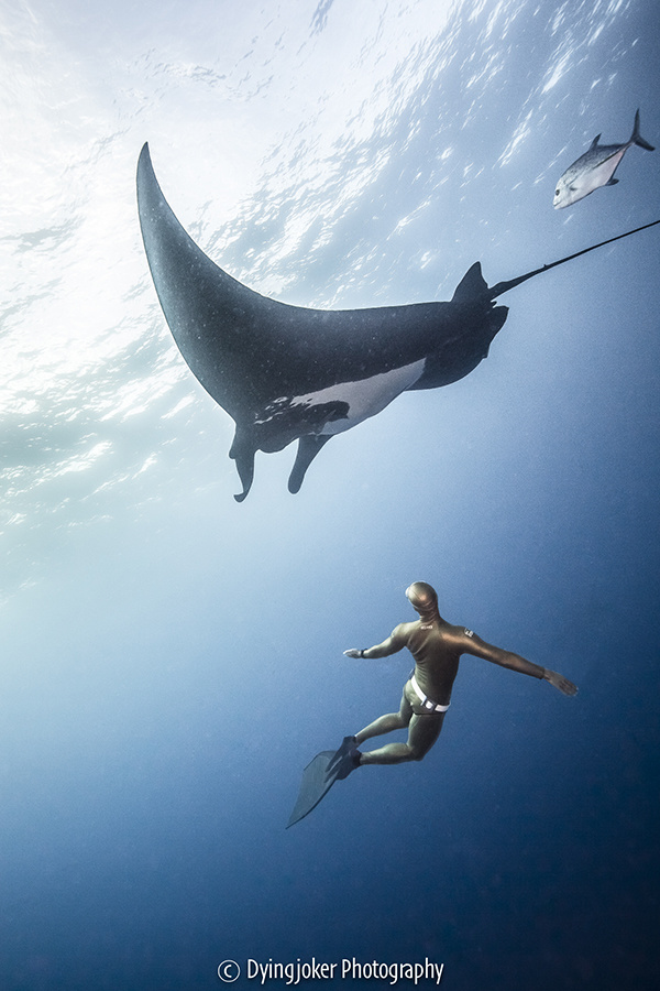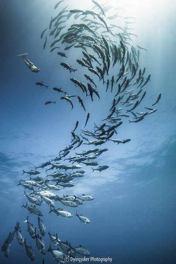 “人与自然、人与动物的互动是我这两年的拍摄重点。这其实也是从环保方面出发的。一开始我只是单纯的记录海洋环境和海洋生物。但是毕竟它们离都市人的生活太遥远,难以产生共鸣。逐渐的我认识到如果人们更多的看到有人可以与海洋生物和谐互动,可以很自如的融入大海的怀抱,画面又那么美。那么他们或许更容易产生兴趣,产生共鸣,从而间接起到保护海洋环境的作用。”