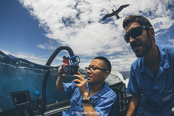 在谈到由自然类摄影到水下摄影的转换,宋刚表示,这一切得益于海洋世界的致命吸引力。“海底的生物是那么的独特,一个个犹如外星来客,且身怀绝技。海底的风光也是绚丽多彩,和陆地截然不同。其实和陆地野生动物摄影师一样,我最喜欢拍野生的大型海洋生物。但是在陆地上野生动物一般都非常警觉,所以往往摄影师都要保持较远距离,用长焦镜头拍摄。而在水下,很有可能你能在非常近的距离内接触一些大型海洋生物。有时候近到你甚至可以看清它身上的一个痦子或一个鳞片。如果你可以想象一群野生海豚围着你转圈,或者数十吨重的座头鲸在你面前翻滚时的心情,就可以理解这是一种什么样的吸引力了。”