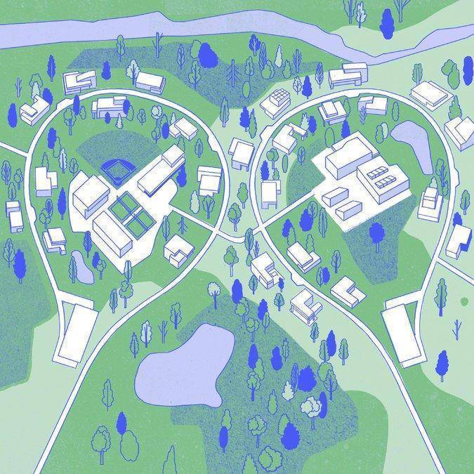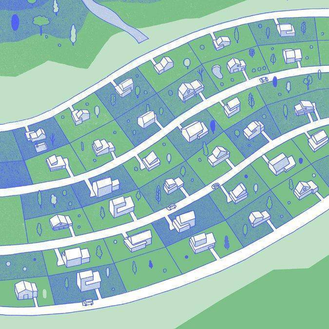目前的城郊设计核心是充分利用土地面积,建更多的房子和停车场,主要的审美元素是修剪过的草坪。这些社区是围绕汽车设计的。很多住宅区附近有小公园或者游乐场,但如果要去更大的休闲区,那就不得不开车了。