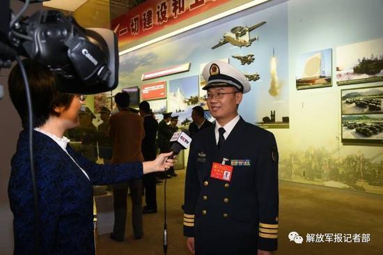 来自海军的党的十九大代表鲁军勇接受采访。记者冯凯旋摄来自海军的党的十九大代表鲁军勇接受采访。记者冯凯旋摄