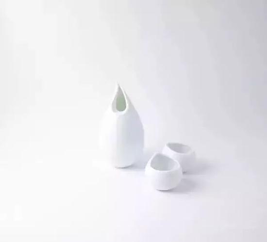 HAIIRO这套酒器形如其名,雨滴酒壶细长优雅、雨滴酒杯矮胖可爱,二者摆在一起相映成趣。MIYAMA的意思是“深山”,搭配酒器素雅的白色,更显幽静。