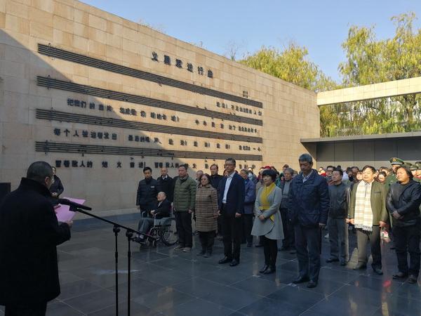 “在今天,我们应该牢记日寇暴行,缅怀死难同胞。也应该团结世界爱好和平的国家和人民,包括日本爱好和平人士,组成反对军国主义复辟的统一战线,保卫亚洲和世界和平。”
