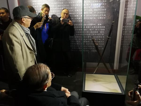 据悉,展览首次对外展出了近百件实物、史料。其中战后“南京军事法庭”审判长石美瑜后人石南阳捐赠的76件文史资料最为珍贵,尤其是一把在“百人斩”杀人比赛中出现的日本武士刀。