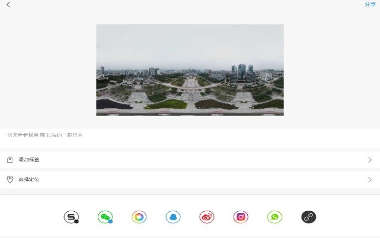 可将保存到相册里的全景图上传到天空之城等网站上查看分享,但上传到微博不能以全景形式展示,因为御的一键全景的全景图丢失了一些信息,以至于微博识别不出来。