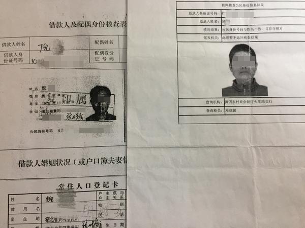 因农村信用社已经改制为农村商业银行,倪明与黄冈农村商业银行火车站支行进行沟通。银行向倪明提供的贷款合同显示,贷款人的姓名和身份证号码都是他的信息,但照片却是另外一个人。