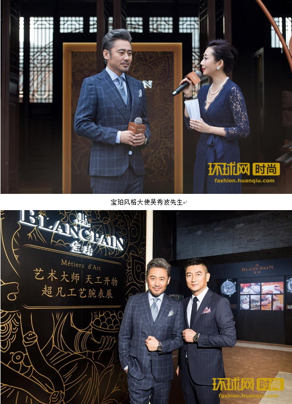 在展览开幕式上,宝珀风格大使吴秀波说道:“从宝珀Métiers d'Art艺术大师工作室的作品中,我能感受到凝结其中的匠人气质,以及显著的宝珀风格——务实而有格调,大气又见细节。这也是我向往的一种风格。风格的最终目的,是驾驭潮流,希望每一个热爱宝珀的人,都拥有自己的风格,拥有一份坚定和自信。”