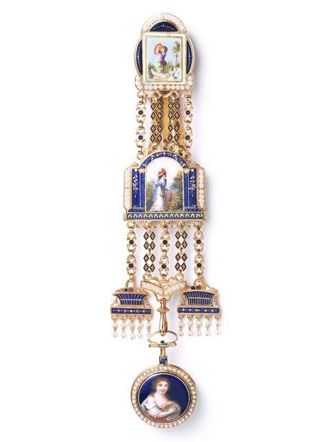1336年,米兰教堂内出现了第一座公共时钟用来让信众去做祷告,信徒也学会利用这一工具来安排日常作息。1510年,德国的锁匠首次制出了怀表,作为身分、地位象征的怀表出现在了王公贵族圈子中,从社交礼仪上来说,在公开场合大张旗鼓的拿出来看时间是非常不体面的事情,宝玑1810年6月8日的一份存留档案显示,那不勒斯王后(拿破仑的妹妹)制作了一枚注重装饰、被制成手镯状的“椭圆形手镯报时腕表” ,既不必大张旗鼓、又可以秘密的查看时间。1825年,江诗丹顿做的一只手链珠宝表可以算是手表的“初级阶段”,K金和珐琅及珠宝镶嵌,机芯直径13法分,塔轮和芝麻链传动,平游丝。一战之后,随着工业革命和石英革命,腕表逐渐普及,大众也有权利拥有私人时间。