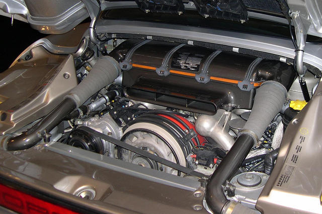 首先是发动机,它搭载的2.8T是基于赛车Moby Dick,也就是保时捷935的发动机打造。这台发动机同时采用风冷与水冷两种冷却方式、单缸4节气门以及2颗惯量不同的涡轮增压器,从而让这台发动机能够有足够强力的性能输出,并且后段的加速也绝不含糊。