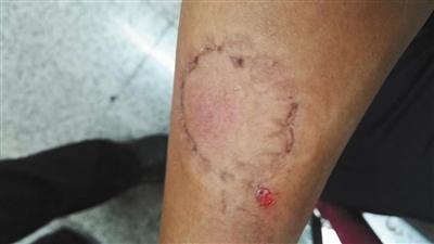 该人松口后,李警官的右前臂出现明显的牙印,伤口已经流血。