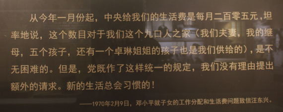 邓小平下放江西后,工资取消,中央发给他一定的生活费。九口之家,生活比较紧张。