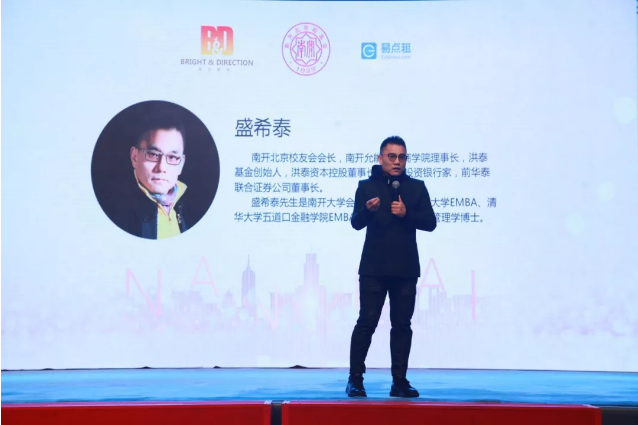 随后,南开北京校友会会长、洪泰基金创始人、洪泰资本控股董事长盛希泰为发展论坛致辞。