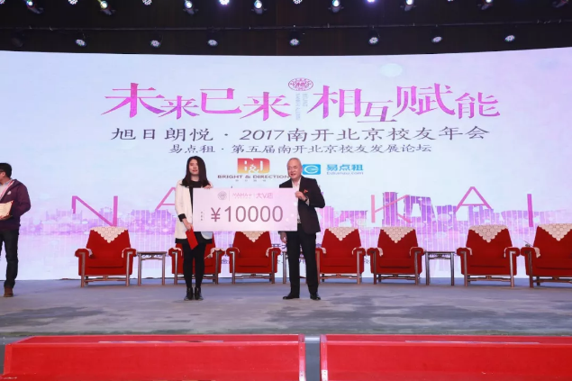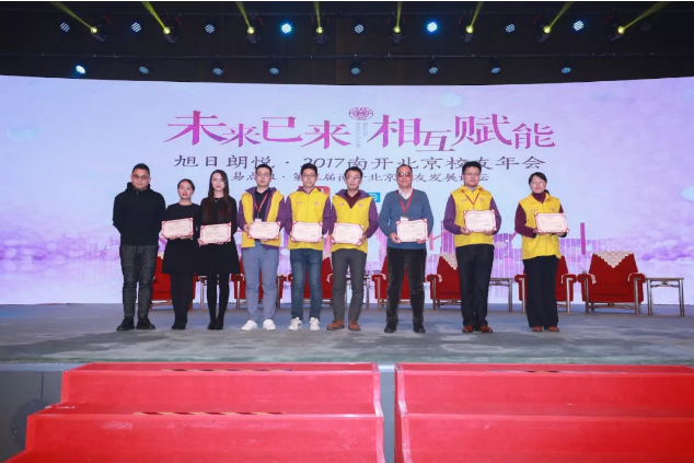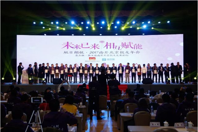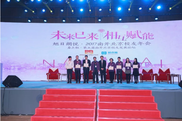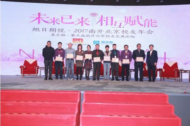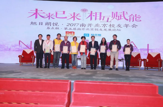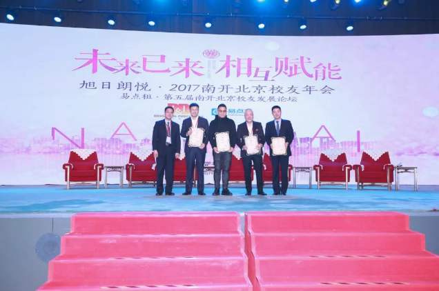 之后颁发了南开北京校友会爱心合作伙伴和南开校友突出贡献奖。获得南开北京校友会爱心合作伙伴奖的是:旭日朗悦、易点租、大V店、花生兄弟、一然生物、偶遇酒、火啤精酿、开心麻花、泛华集团、九鼎国尚、云锋金融、洪三板、魔学院、韦尔科技、闫磊。