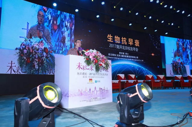 之后由本届年会的冠名赞助商旭日朗悦首席医学专家程洪斌博士做了主题演讲,主题是《生物抗早衰》。主要讲述了早衰的表现,以及如何利用生物因子抗早衰。