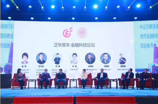 之后进入了第三个子论坛,金融论坛。由唐珺主持,陈凯、张大威、刘鑫(包商银行)、李婷(云锋金融CEO)、赵瑞安(万达网络科技集团副总裁)、刘晓鹏(国美金融科技CEO)、董骝焕(同看科技)参与论坛。