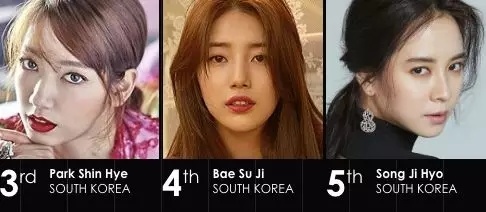 第三四五名,分别是韩国的:朴信惠、秀智和宋智孝。